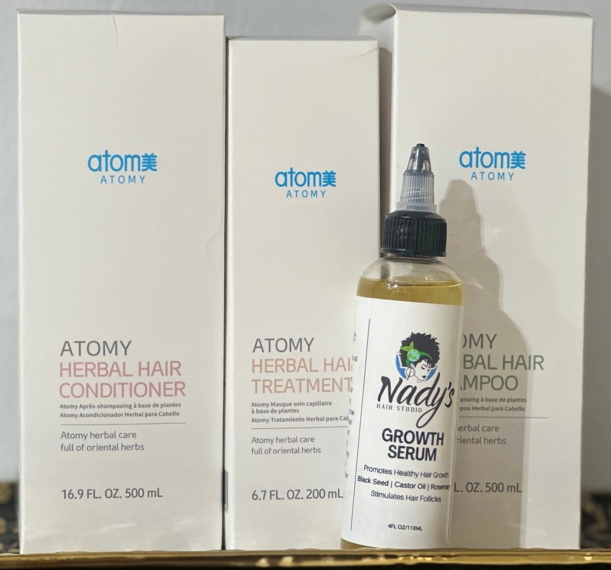 Give your hair the care it deserves with our hair growth kit, a complete system designed to cleanse ,nourish, and support healthy hair growth from root to tip. This kit combines atomy herbal hair care with nady's hair growth oil for visible strength ,moisture, and scalp health.